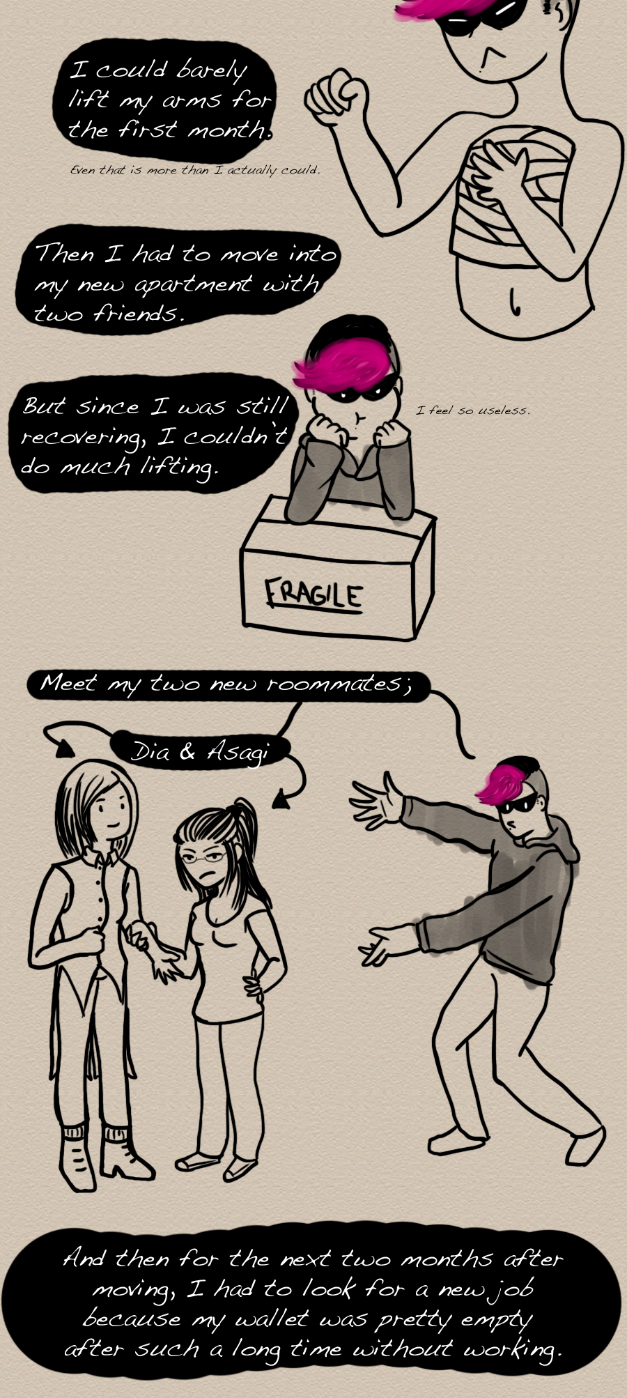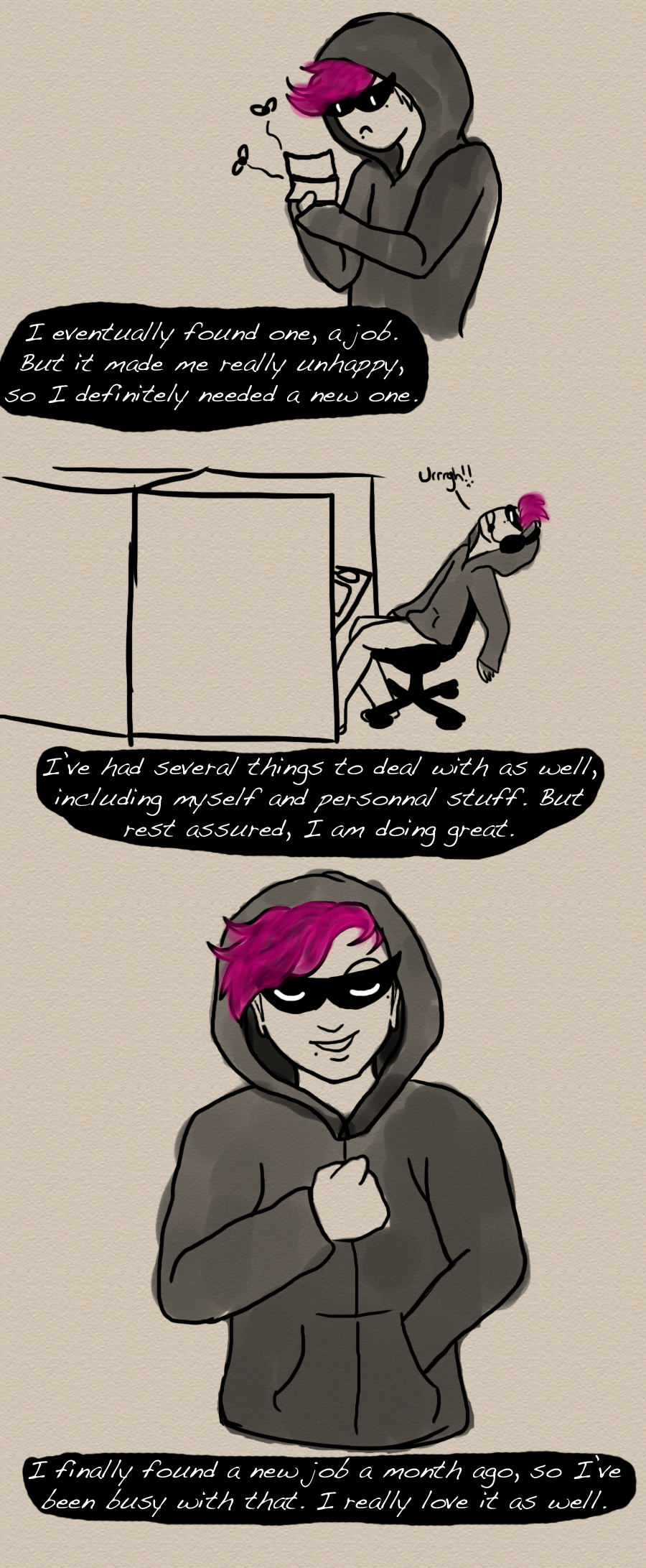 I had a lot of support from the few friends I have in my time of need, so that helped a lot (Thanks a bunch guys I love y'all <3). Hopefully this time i'll be here for a longer time before things turn to shit again. :')