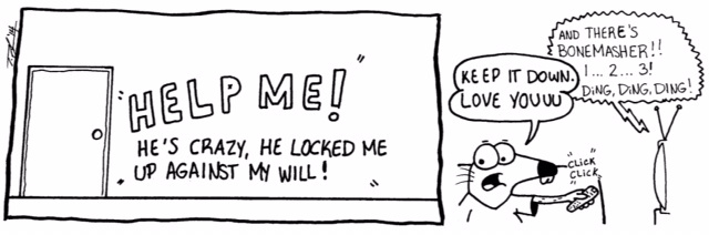 I WAS THINKING OF SAYING HULK HOGAN BUT I WAS THINKING OF USING THE BONE MASHER CHARACTER IN A LATER STRIP.