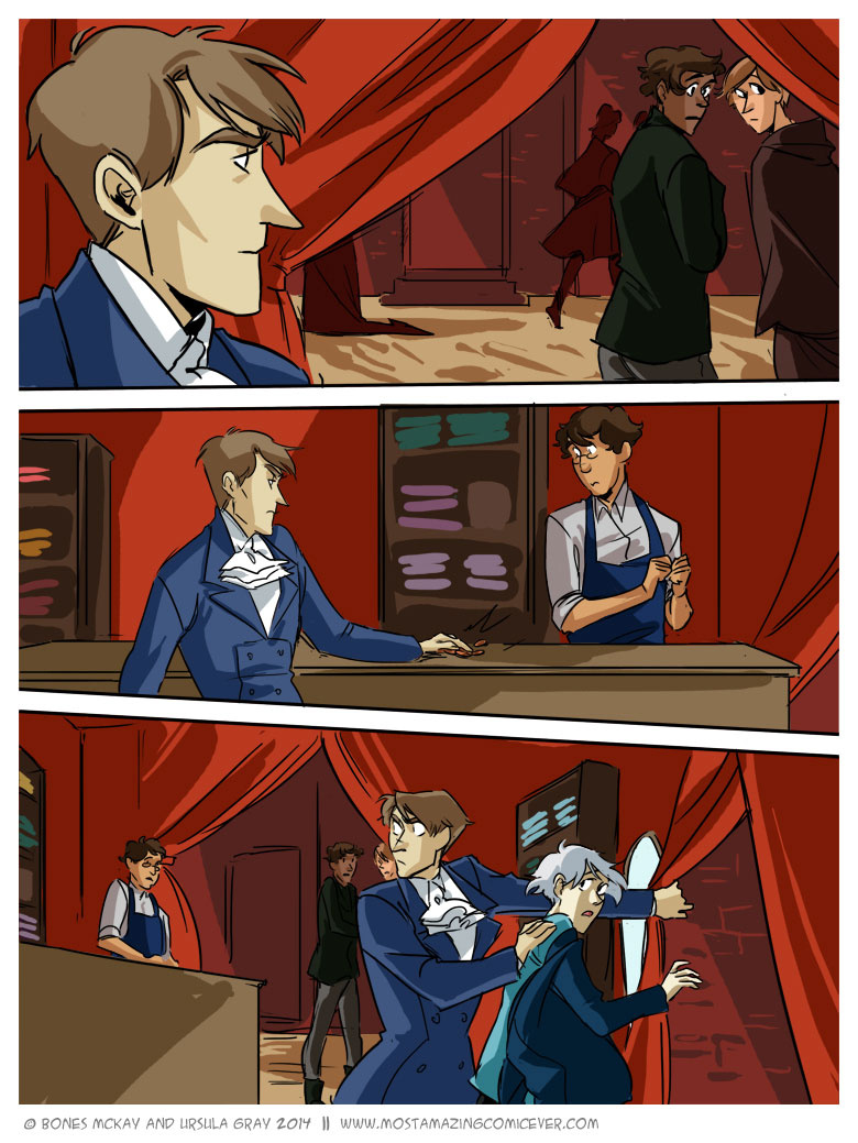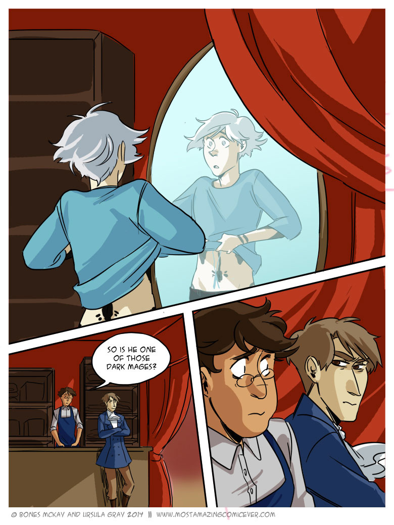 Elias suddenly looks much better in normal clothes... The tattoos looked awesome tho. Maybe it'll make him less clumsy since he no longer has a foot long of fabric trailing behind him? XD