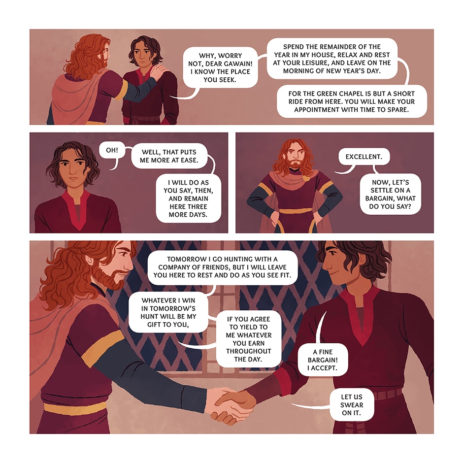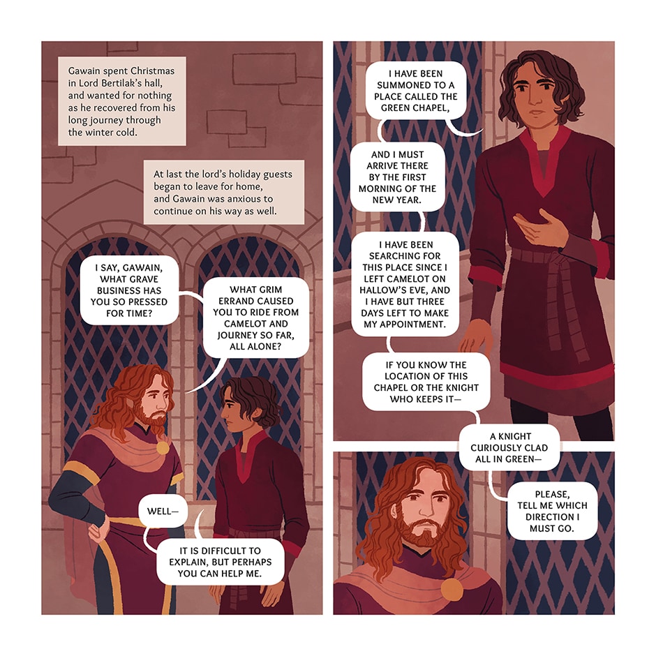 It is New Year's Day at King Arthur's court, and a mysterious knight in green arrives at the holiday feast with a peculiar demand. He challenges anyone present to strike a blow against him with his fearsome great axe - but on the condition that, in one year's time, he may deliver the same blow in return.