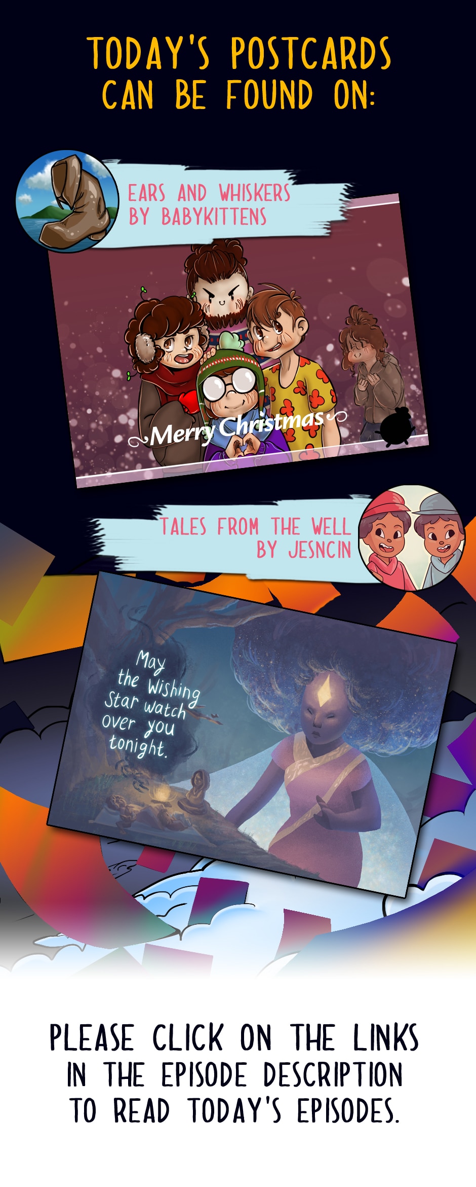 2 Creators a day will post their holiday strip. Please follow the link in the episode description to visit the artist's main series and read their episode. This hub series will collect all the collab episodes and post them here collected after Christmas.