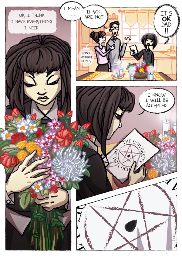 Janet is a witch. She is about to enter in the prestigious University of Witchcraft to become an Elite Witch. Hantise is Janet's Sheitan. Or maybe Janet is his witch. Anyway, they are supposed to do great sorcery things together... about Life and Death, since it is their speciality c(o)urses.