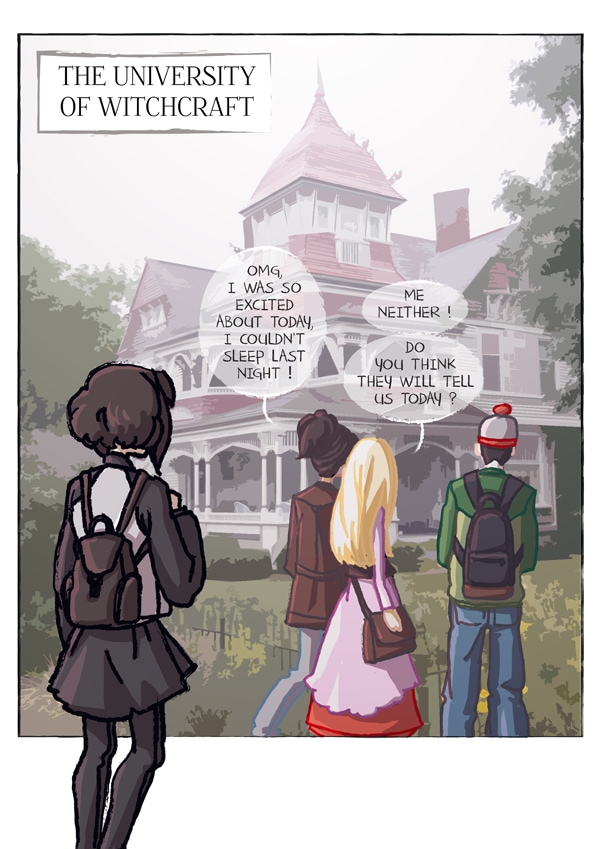 Janet is a witch. She is about to enter in the prestigious University of Witchcraft to become an Elite Witch. Hantise is Janet's Sheitan. Or maybe Janet is his witch. Anyway, they are supposed to do great sorcery things together... about Life and Death, since it is their speciality c(o)urses.