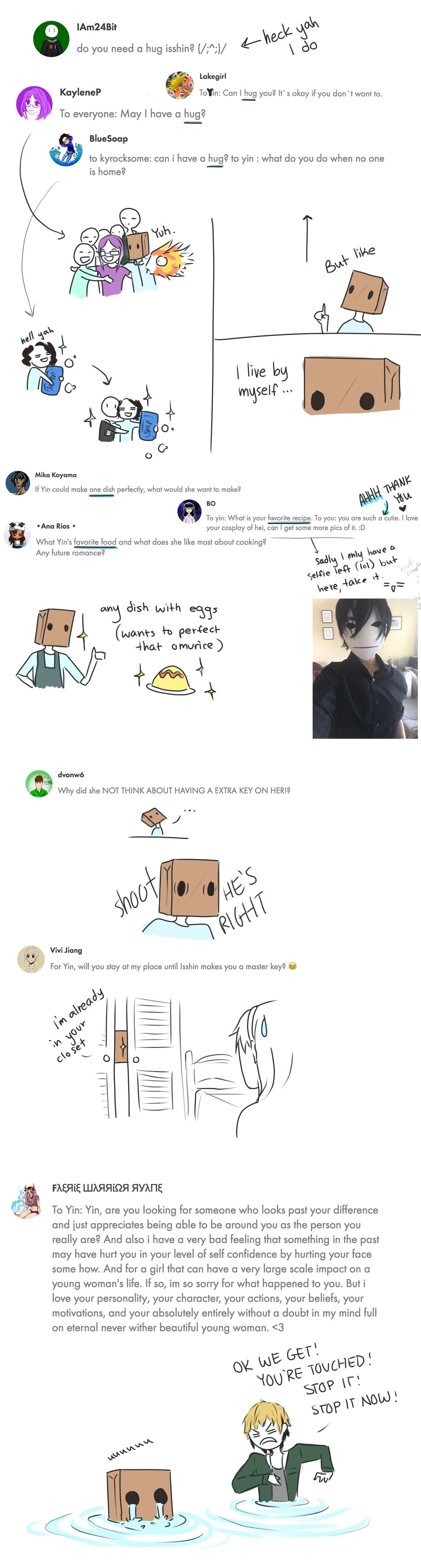 Yin is an unlucky one, and deals with a self esteem issue so strong that she wears a bag over her head all the time. The members of the art club, as well as her only friends are the few who have accepted her as she is.