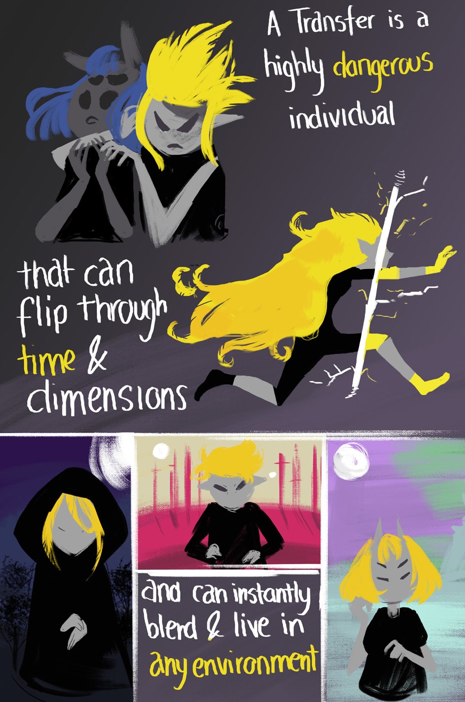 Zach is a Transfer, she possesses the unique ability to flip between dimensions, travel across space and adapt within seconds to any environment. However, Transfers were all killed centuries ago due to threats on the government and royal authorities. Now Zach must hide her powers, but how long can she keep it up?