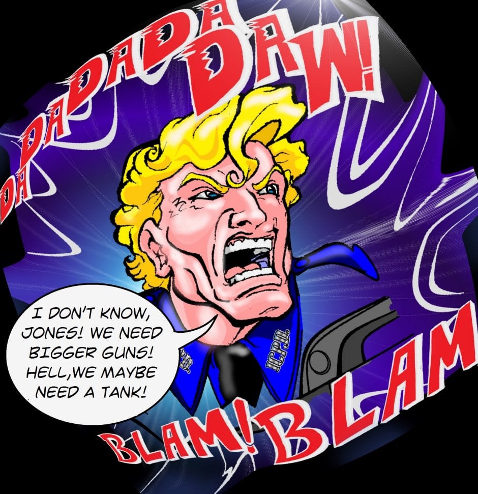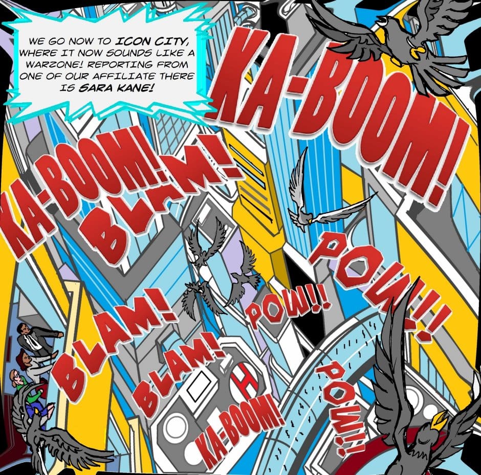 Icon City is under attack by axe wielding menace! The ICPD are doing their best to hold it at bay, but all efforts are faltering... Zoom in on images here! http://imgur.com/a/JFnwC