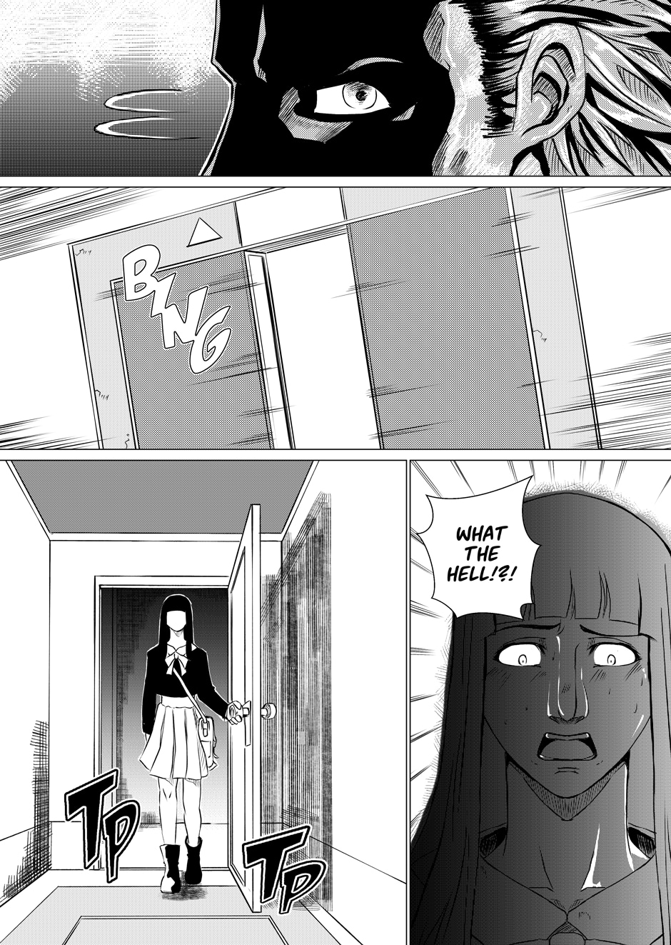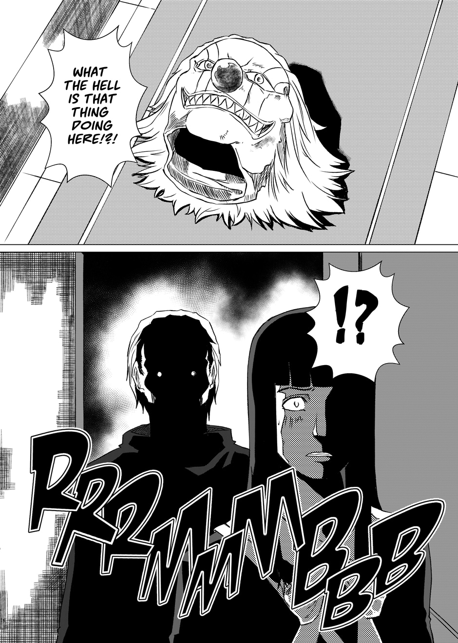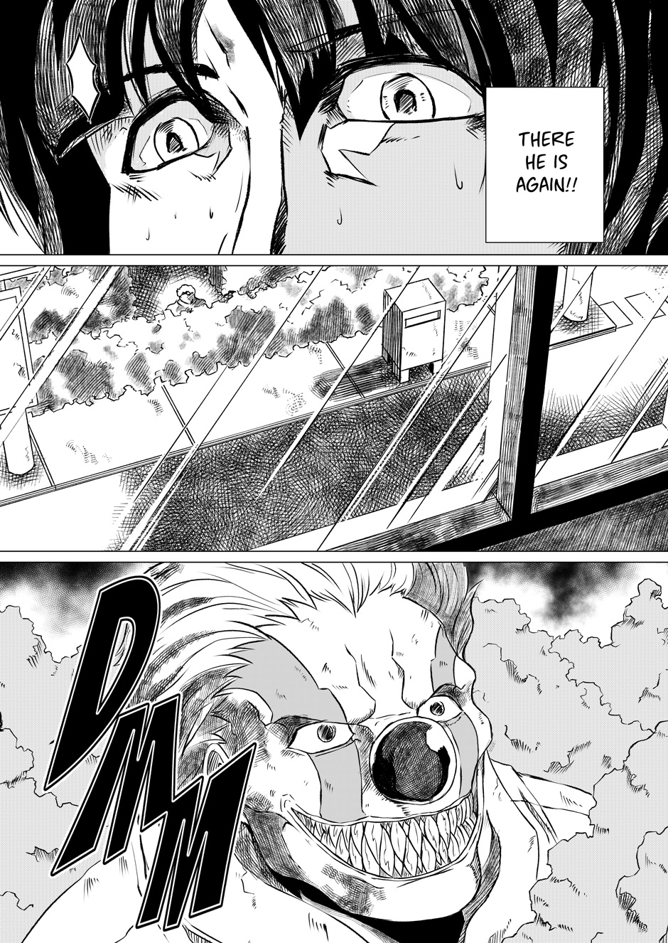 A young woman is stalked by a man in a creepy clown mask.