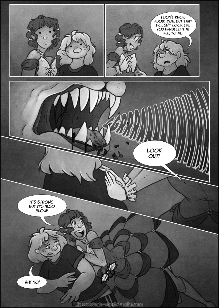 ongoing since 2014, Let’s Celebrate! is a slow-burn F/F adventure about friends-to-lovers, found family, and recovery. it was first released in grayscale and was rebooted in 2019 after a year-long hiatus in full colour and with a complete recap of the first two chapters; making it easy for new readers to jump right in!