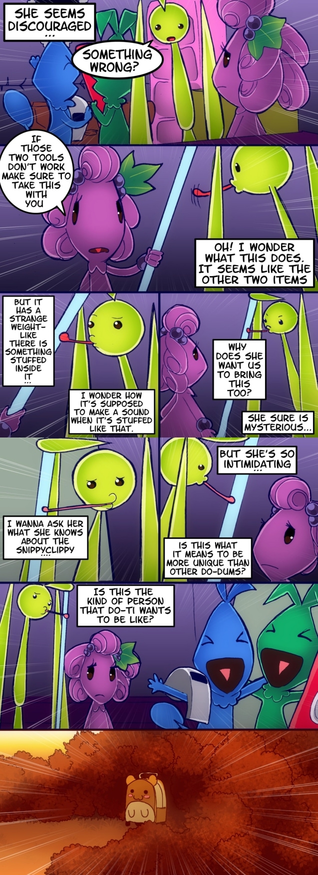 Somewhere in a mysterious and magical place, there lives little singing, lizard-like creatures called the Do-Dum Tribe. Every Do-Dum has the ability to sing, but few special Do-Dums possess the magic of a unique sound. Do-Ti is one of the ordinary Do-Dums, whose desire to possess a unique sound, has led him to venture outside of the Mango Gardens. However, when Do-Ti tries to return, he discovers that the Great Tree, that has always been home to his people, has been taken over by a big black bird! Like Do-Ti, this feathered intruder is also just as interested in possessing the magic of a unique sound...