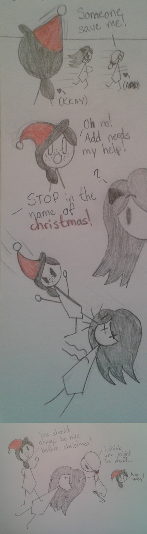 hahaha XD Stop it in the name of christmas is my new favourite saying XD I hope she is not dead tho XD