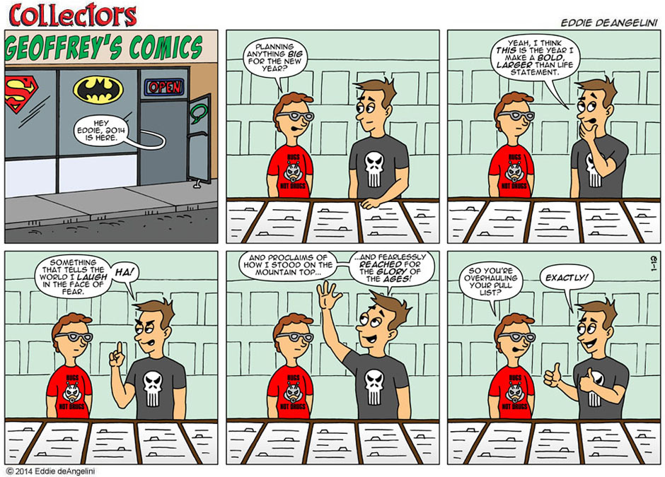 The love story of a husband, a wife and a comic book collection. Collectors is a sunday-style color comic strip about Eddie, a comic book collector who loves his wife and his comic collection...but not always in that order!