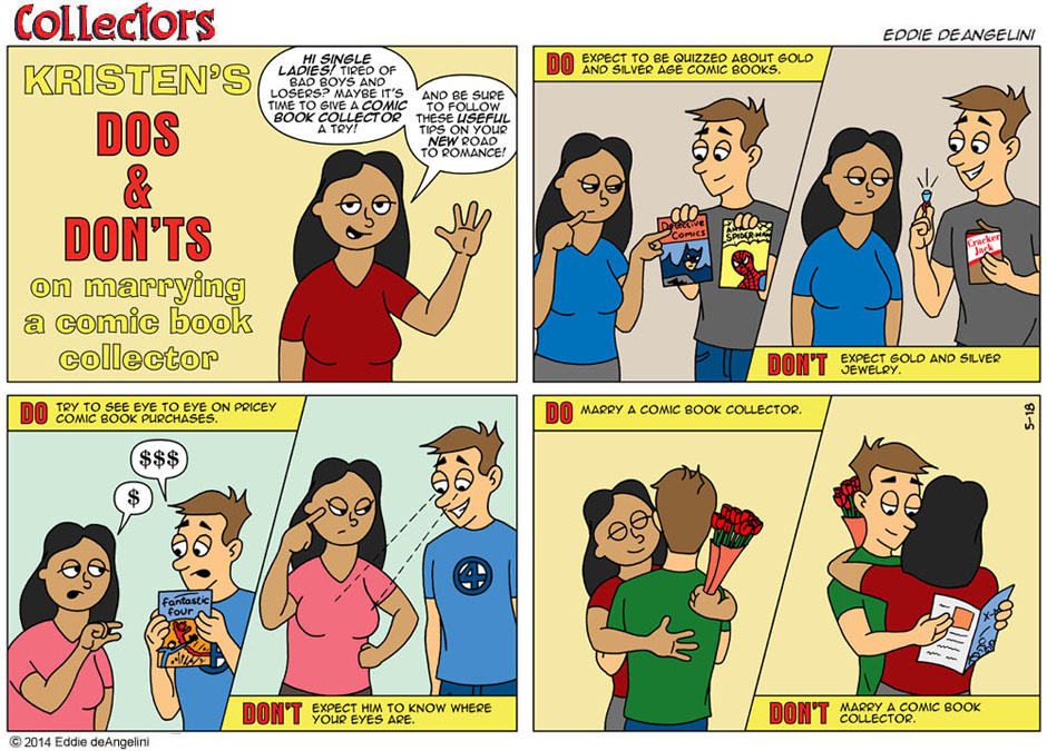 The love story of a husband, a wife and a comic book collection. Collectors is a sunday-style color comic strip about Eddie, a comic book collector who loves his wife and his comic collection...but not always in that order!