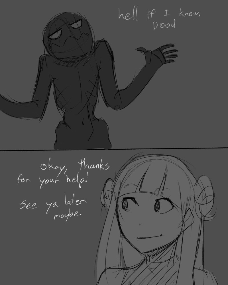 By all means I didn't mean for this to really be a serious comic, so with that said, there's a lot of imperfections and blunders and overall sketchiness, so I ask for pardons on such things