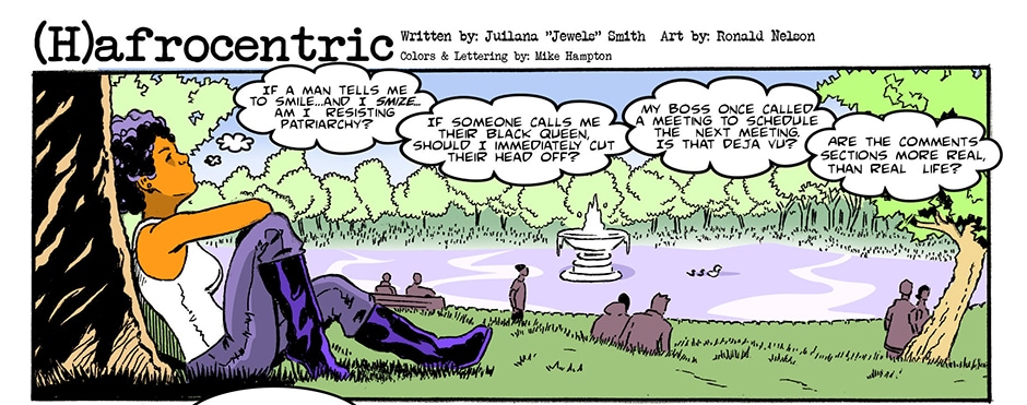 (H)afrocentric stars a posse of disgruntled undergrads of color as they navigate their way through Ronald Reagan University. Follow the self proclaimed radical Black feminist, Naima Pepper (who has a White mama), as she deals with the contradictions of her own life in various ways—lashing out in rants about gentrification, white supremacy, and apathy.