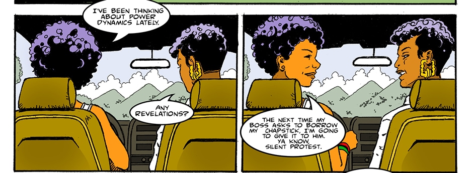 (H)afrocentric stars a posse of disgruntled undergrads of color as they navigate their way through Ronald Reagan University. Follow the self proclaimed radical Black feminist, Naima Pepper (who has a White mama), as she deals with the contradictions of her own life in various ways—lashing out in rants about gentrification, white supremacy, and apathy.
