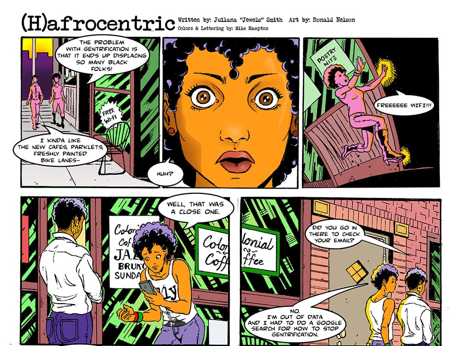 (H)afrocentric stars a posse of disgruntled undergrads of color as they navigate their way through Ronald Reagan University. Follow the self proclaimed radical Black feminist, Naima Pepper (who has a White mama), as she deals with the contradictions of her own life in various ways—lashing out in rants about gentrification, white supremacy, and apathy.