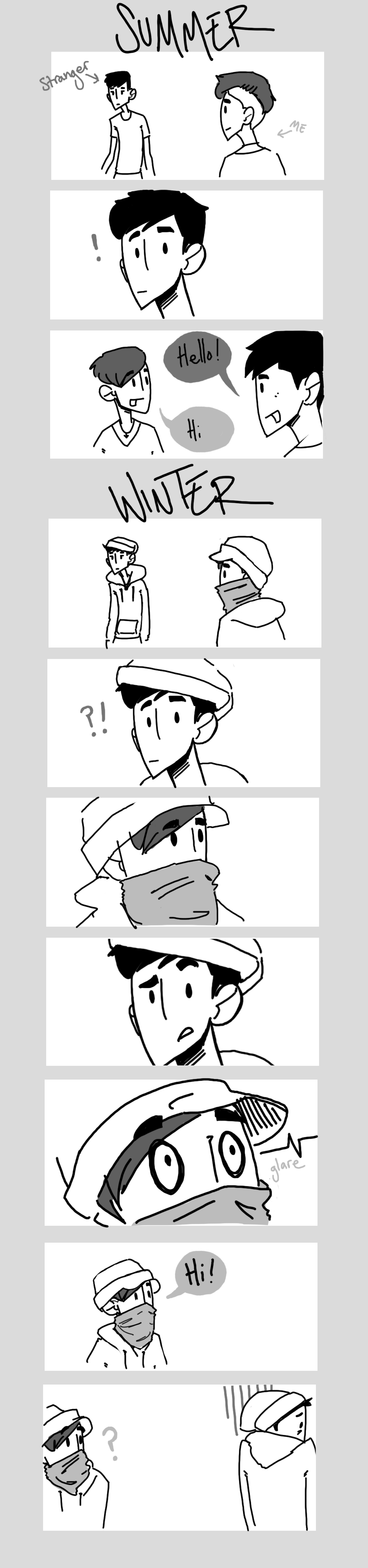 I like to smile when I walk past people, to be kind. Doesn't quite go the same way when I'm wrapped up warm...