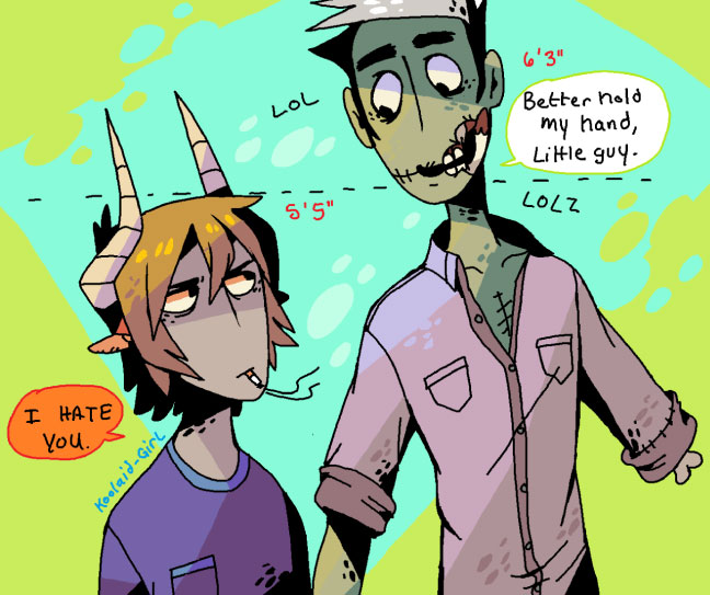 For anyone that was curious to how much difference there is, here you go. (Also, Zombie Jer was designed before Human Jer so I tend to draw him as a zombie more than human...)