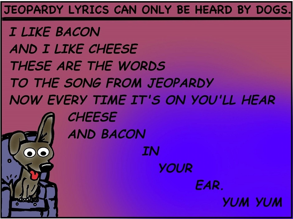 Turns out the Jeopardy song has really stupid lyrics, which were thought to be turned off, but are somehow still able to be heard by dogs.