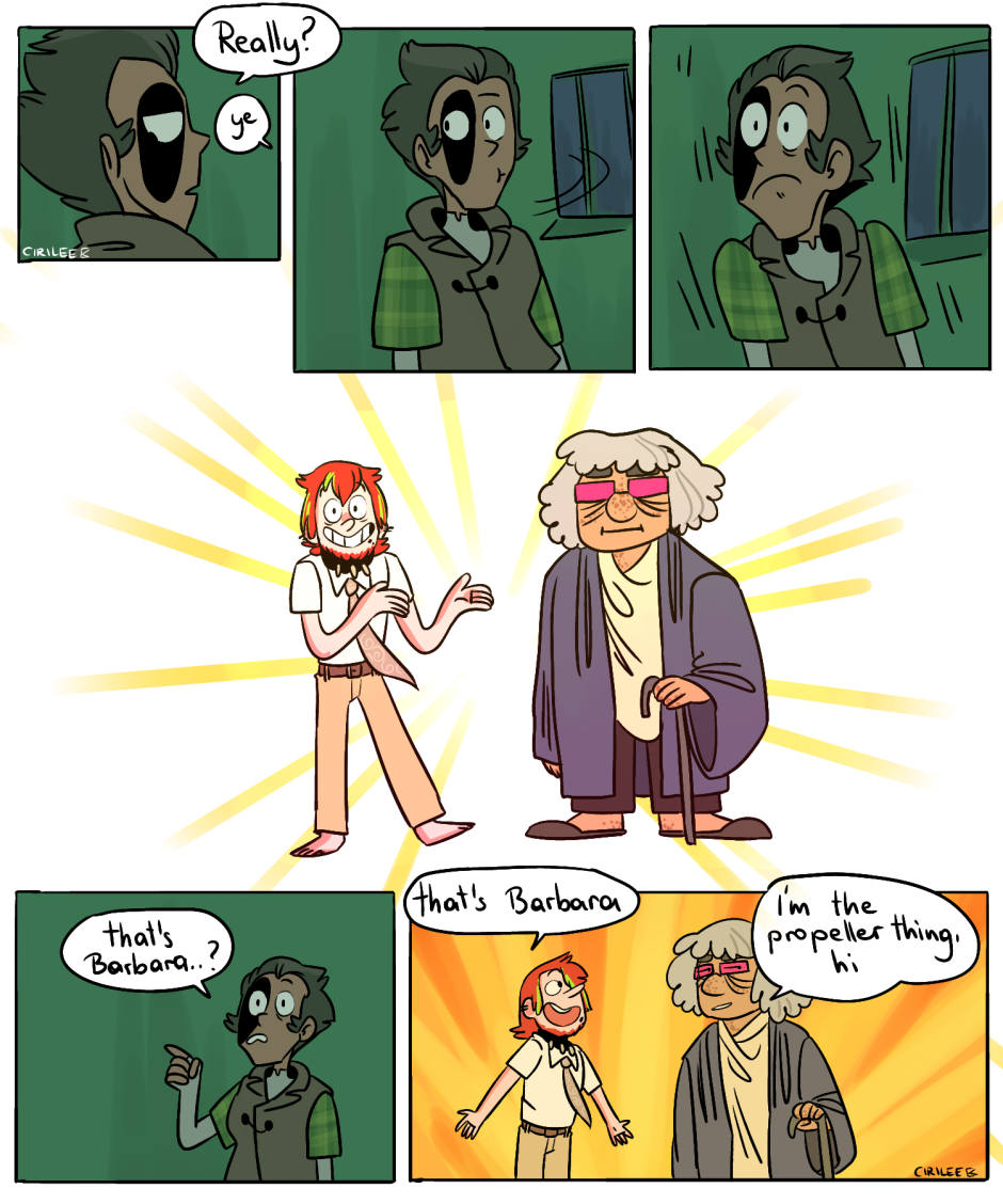 Ohmigosh you're back! :D Babara looks chill, I wonder if she can fly in old-lady form too...?