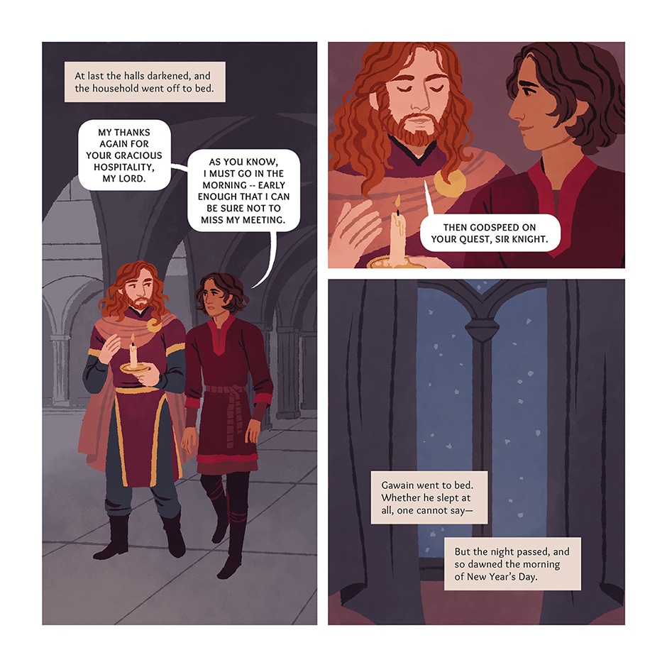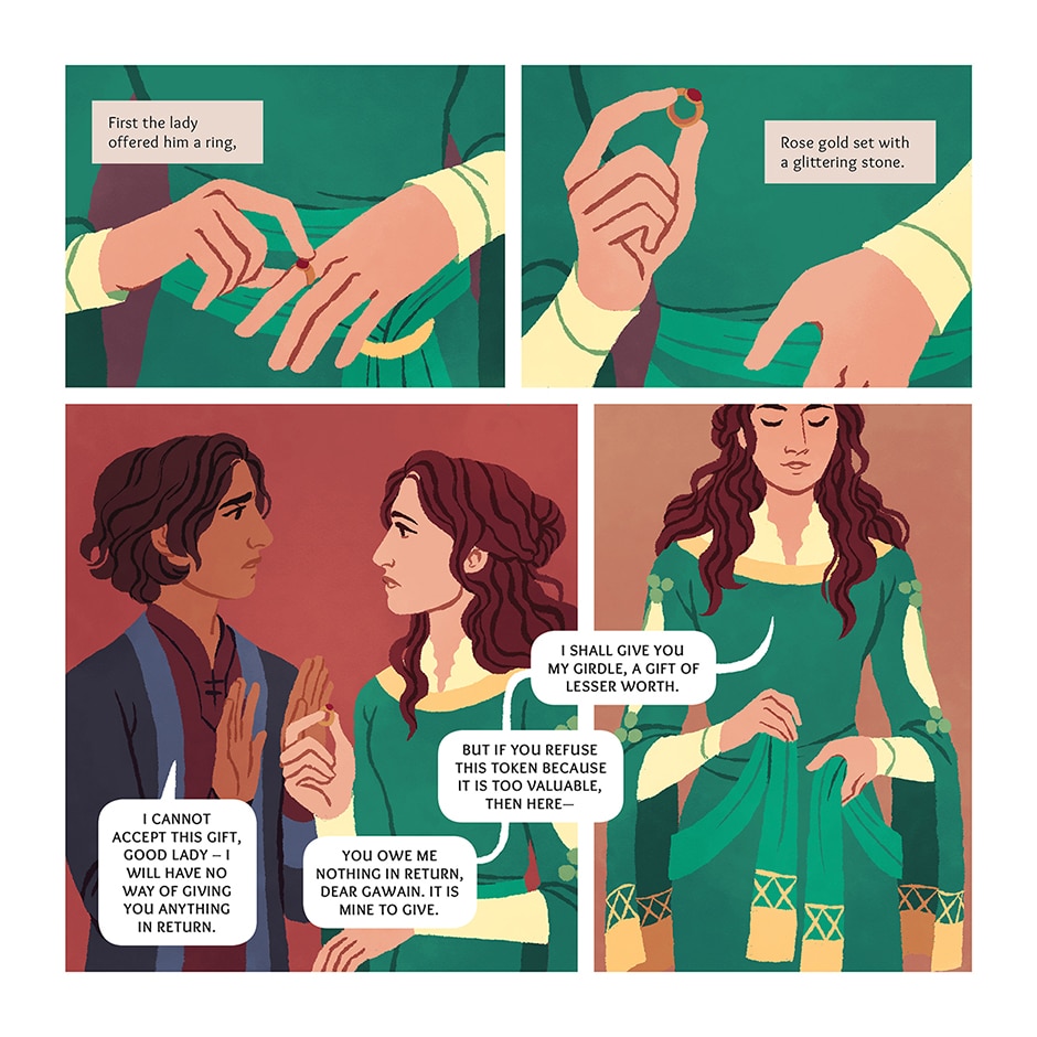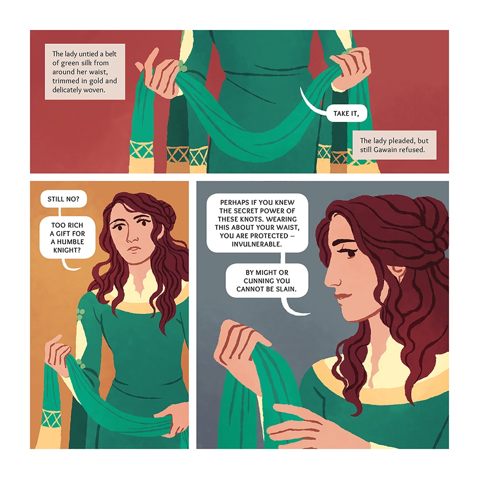 It is New Year's Day at King Arthur's court, and a mysterious knight in green arrives at the holiday feast with a peculiar demand. He challenges anyone present to strike a blow against him with his fearsome great axe - but on the condition that, in one year's time, he may deliver the same blow in return.