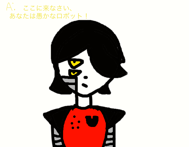 Translation: Come here, you stupid robot!