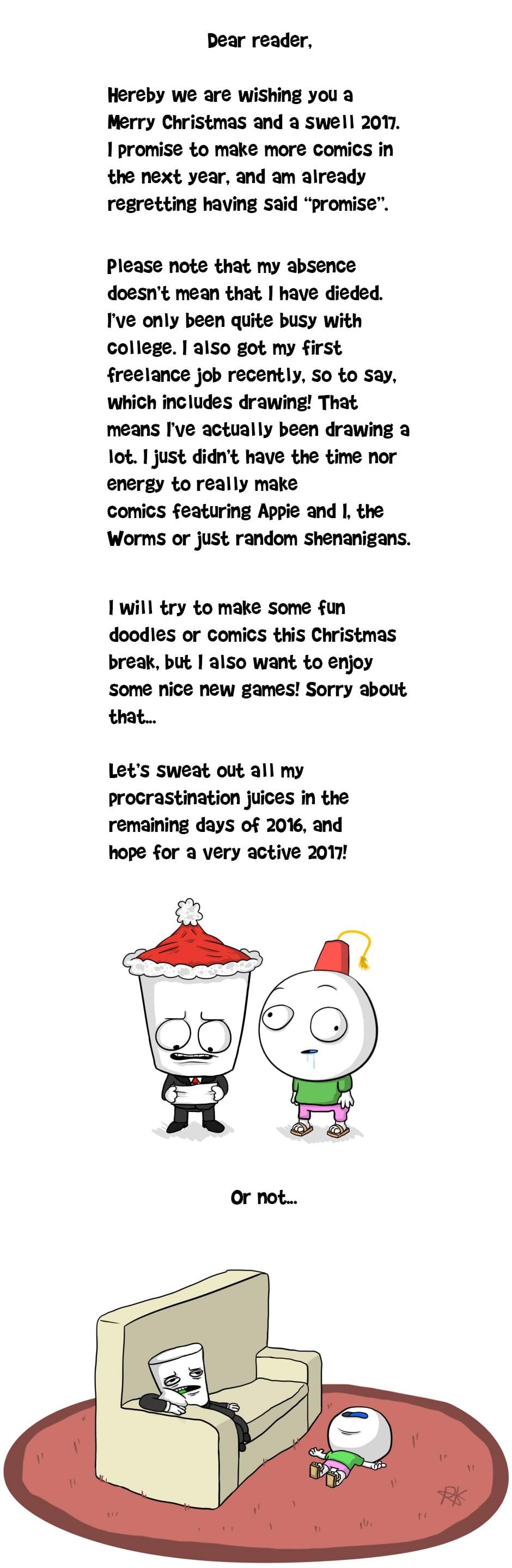 I wanted to make a proper Christmas comic, but really couldn't get to it. I hope this small doodle update will suffice for now.