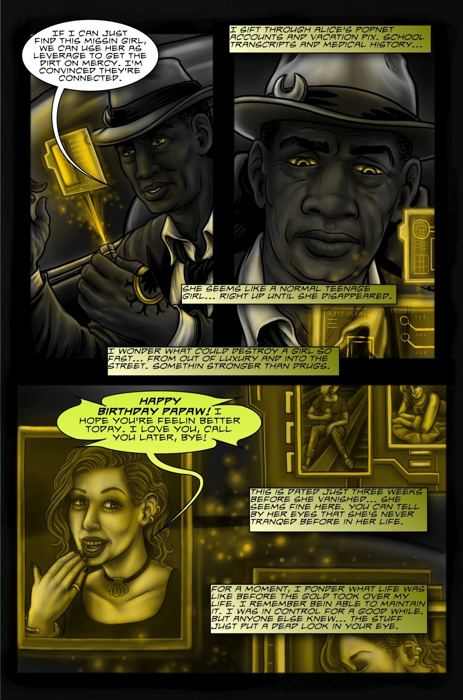 He has the useful skill to find anyone or anything you're searching for. But after stealing an experimental drug from a corpse, he finds nothing but trouble! Can he resist the dark temptations of a wicked city? Can he keep his heart beating long enough to find a missing woman? Or will his own nasty habits imprison him forever in the Golden Silence?