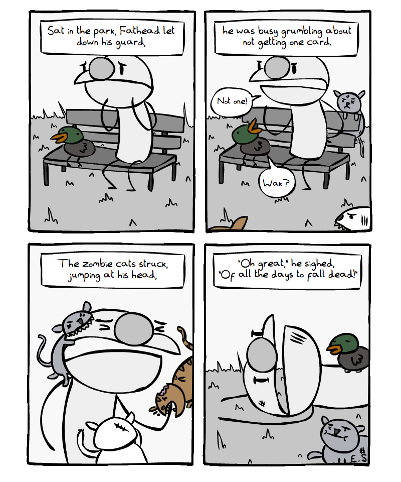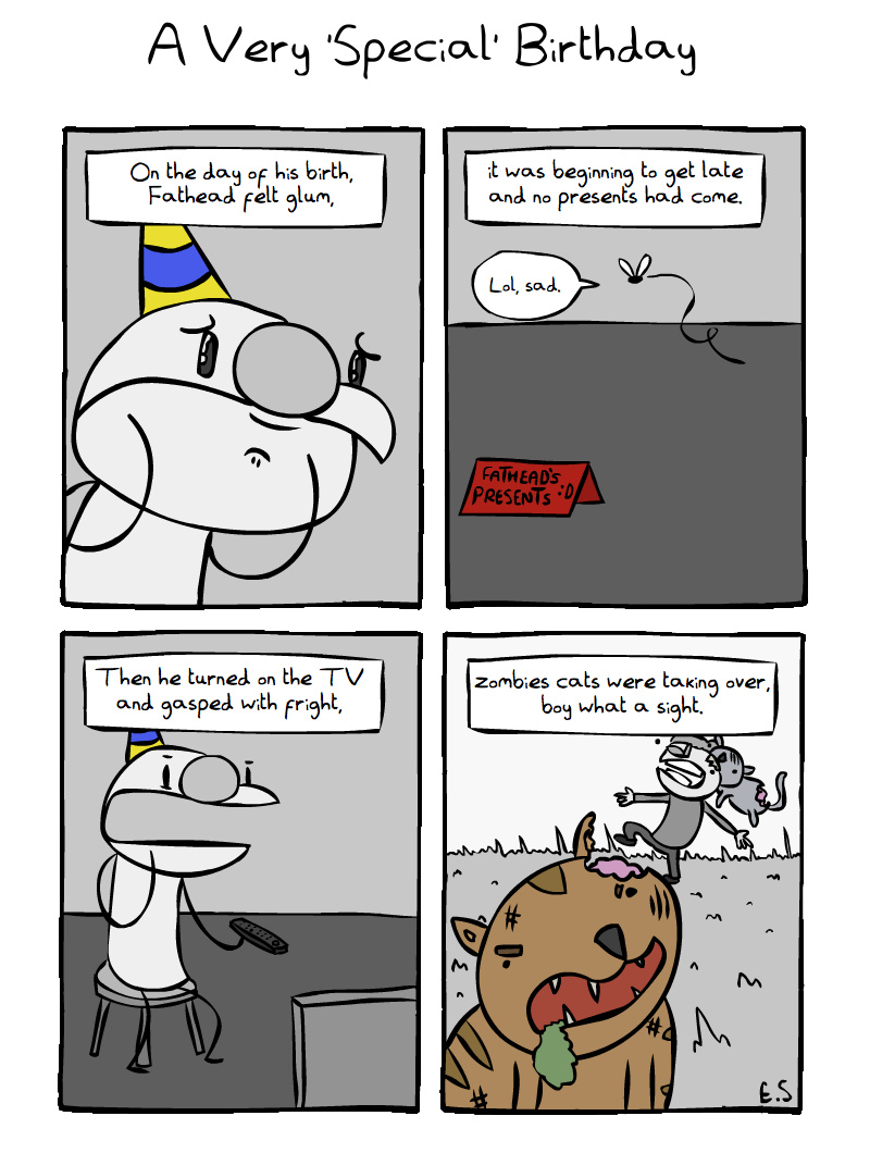 Fathead's birthday is forgotten due to an invasion of zombie cats.