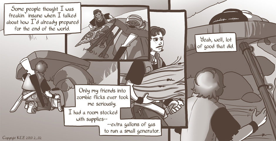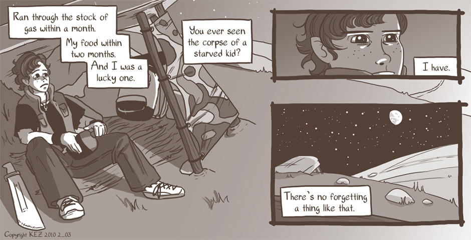 Colbey is a martial artist who survives the end of the world. Armed with knowledge, experience and a machete, she is searching through what's left for a man named Peter Wolfe.