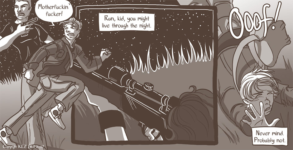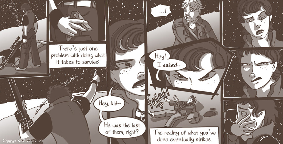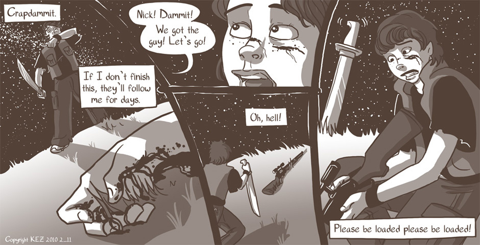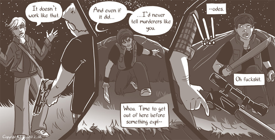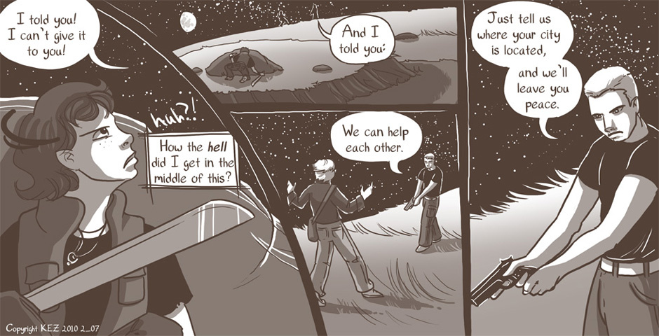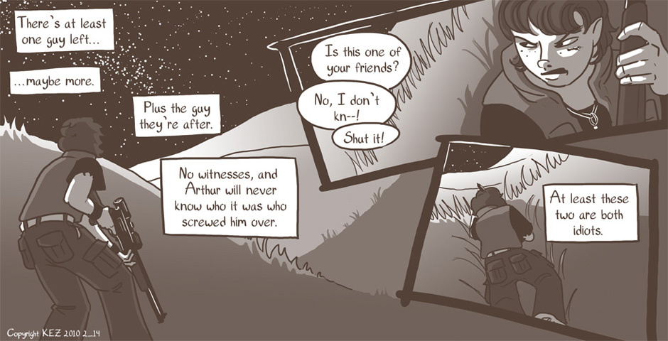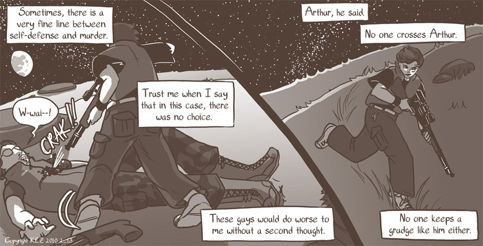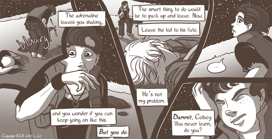 All Colbey wants is one good night's sleep. But when she is awakened by a fight outside of her camp, she's drawn into things whether she likes it or not. But will she play the role of the killer, or the rescuer?