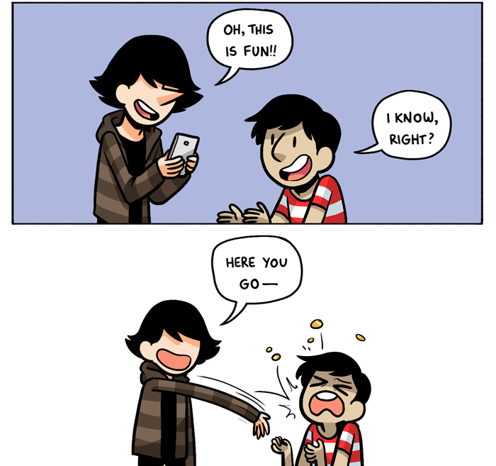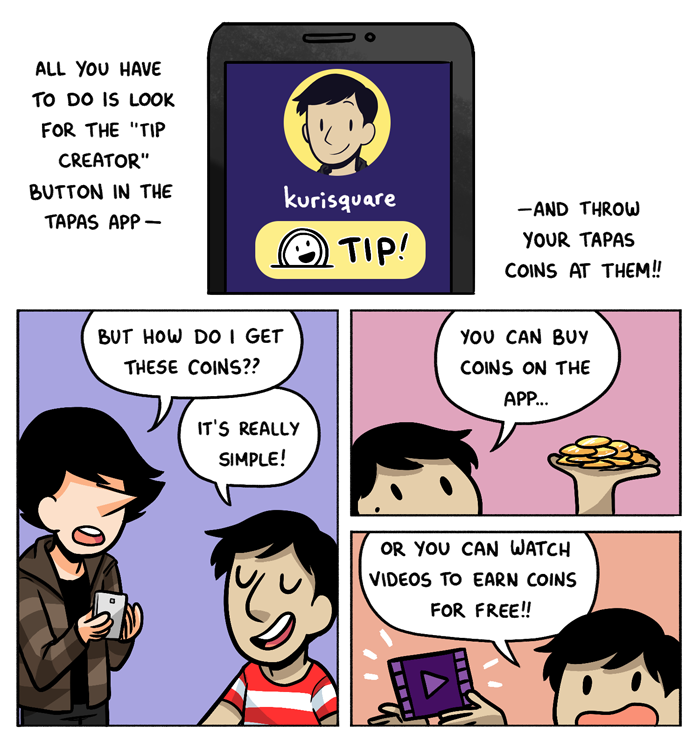 Postcards in Braille is now part of the new tipping feature for the Tapas app! so if you're on the app and enjoy the comic, you can...throw some coins at my face. Don't worry, it doesn't hurt at all!!
