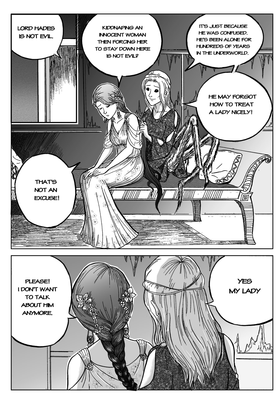 This comic retold the classic myth in Greek mythology: Hades and Persephone. It based largely on the original story but I decided to change many details from characters' relations, their appearances, personalities and some events. I even put some faces who weren't supposed to be in story (ha ha I don't know why, but I just felt I like it). By the way, I'm not native speaker so please forgive me for any grammar mistake.