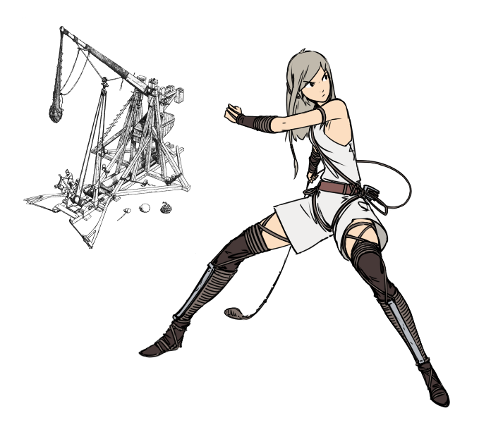 Can she throw a stone projectile 300 meters away?