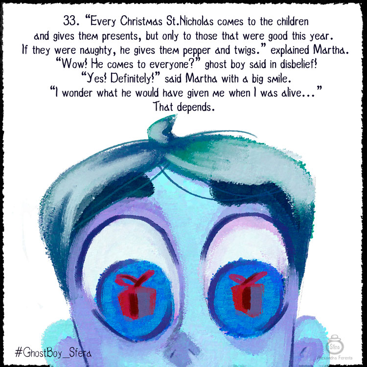 I've just realized that Ghost Boy's hair became too dark for some reason! X D Will pay more attention to that in the future. He should change with the story but not his hair :э Happy Holidays and New Year, everyone! : D