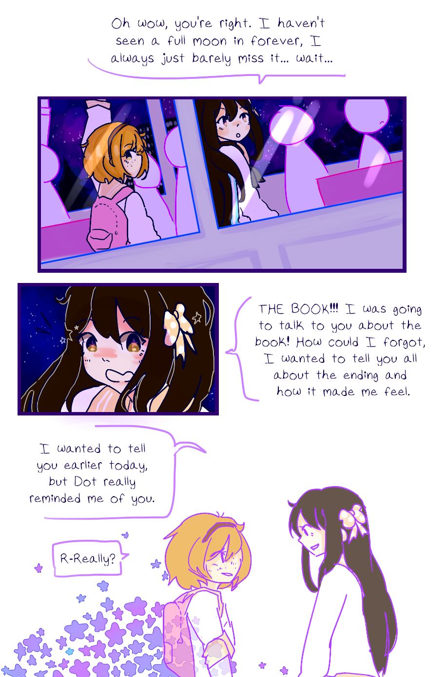 Mollyanne is a 15 year old Star who died on Earth, ended up in a space afterlife, and now she and 7 other Stars have to chase down the Moon that apparently disappeared.