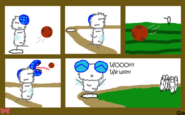 Here we have Scott playing kickball with other people. However he was supposed to lose.