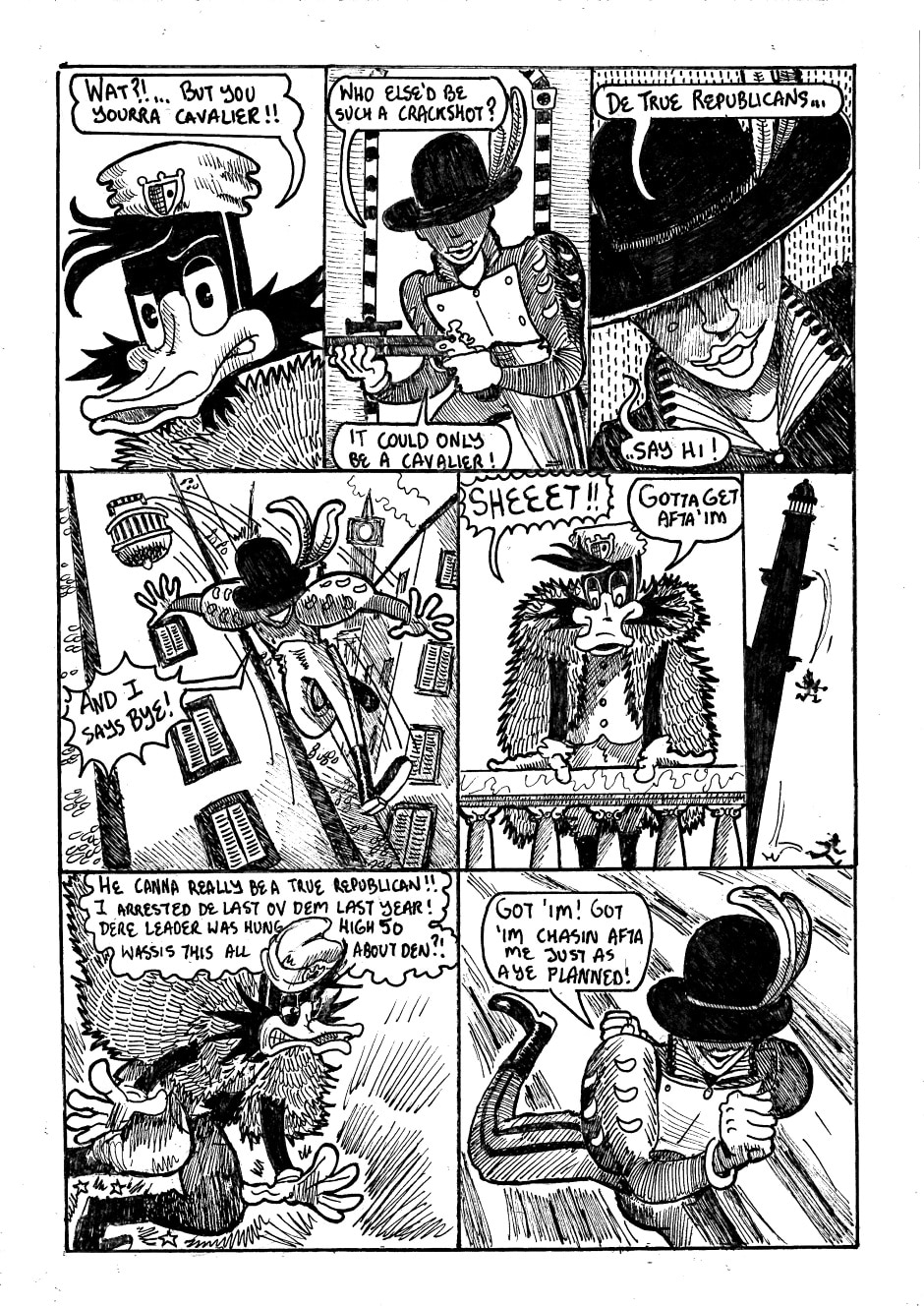 This is a 22 page comic (plus cover and back) which I wrote, drew and inked in just over a week (8 days to be exact) It's a black and white adventure of a Lieutenant duck who must try to solve the murder of the wealthy daughter of a corrupt, corpulent senator.