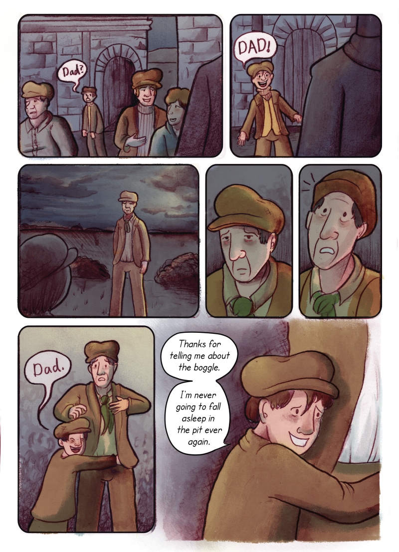 I think it's hard as a child, figuring out why grown-ups do the weird things they do. Especially where death is involved. I've got to admit, it felt good to finally draw Tom giving his Daddy a hug. I think both of them needed it.