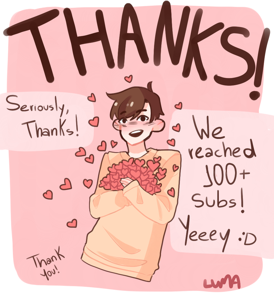 YAY! 100+ subs! Thats really cool XD Thanks <3<3 tbh I thought it was really fast, I honestly did not think I would reach in two weeks and I need to thank you all for this, so thank you again <3 ALSO, special thanks for Add https://tapastic.com/Add
