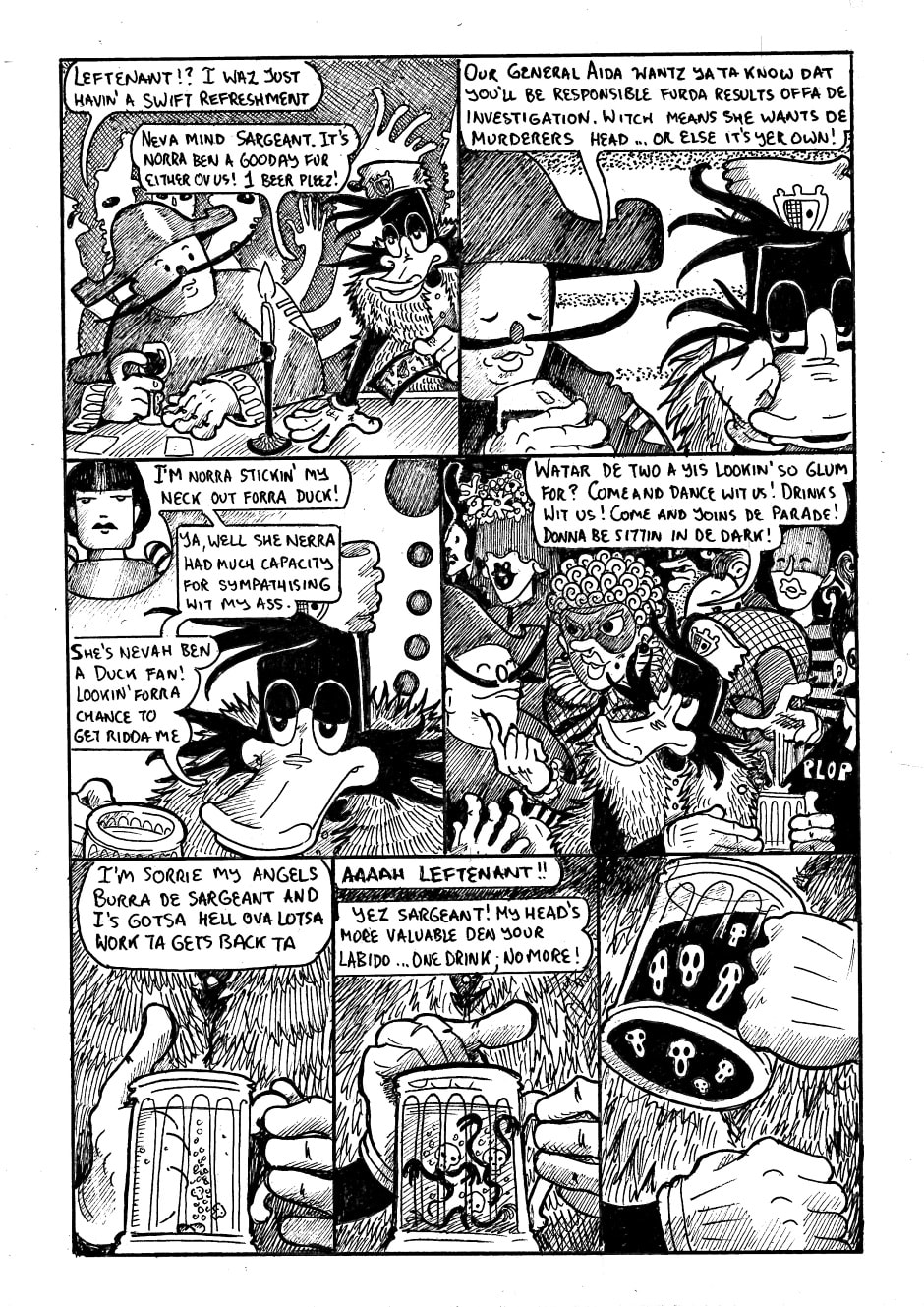 This is a 22 page comic (plus cover and back) which I wrote, drew and inked in just over a week (8 days to be exact) It's a black and white adventure of a Lieutenant duck who must try to solve the murder of the wealthy daughter of a corrupt, corpulent senator.