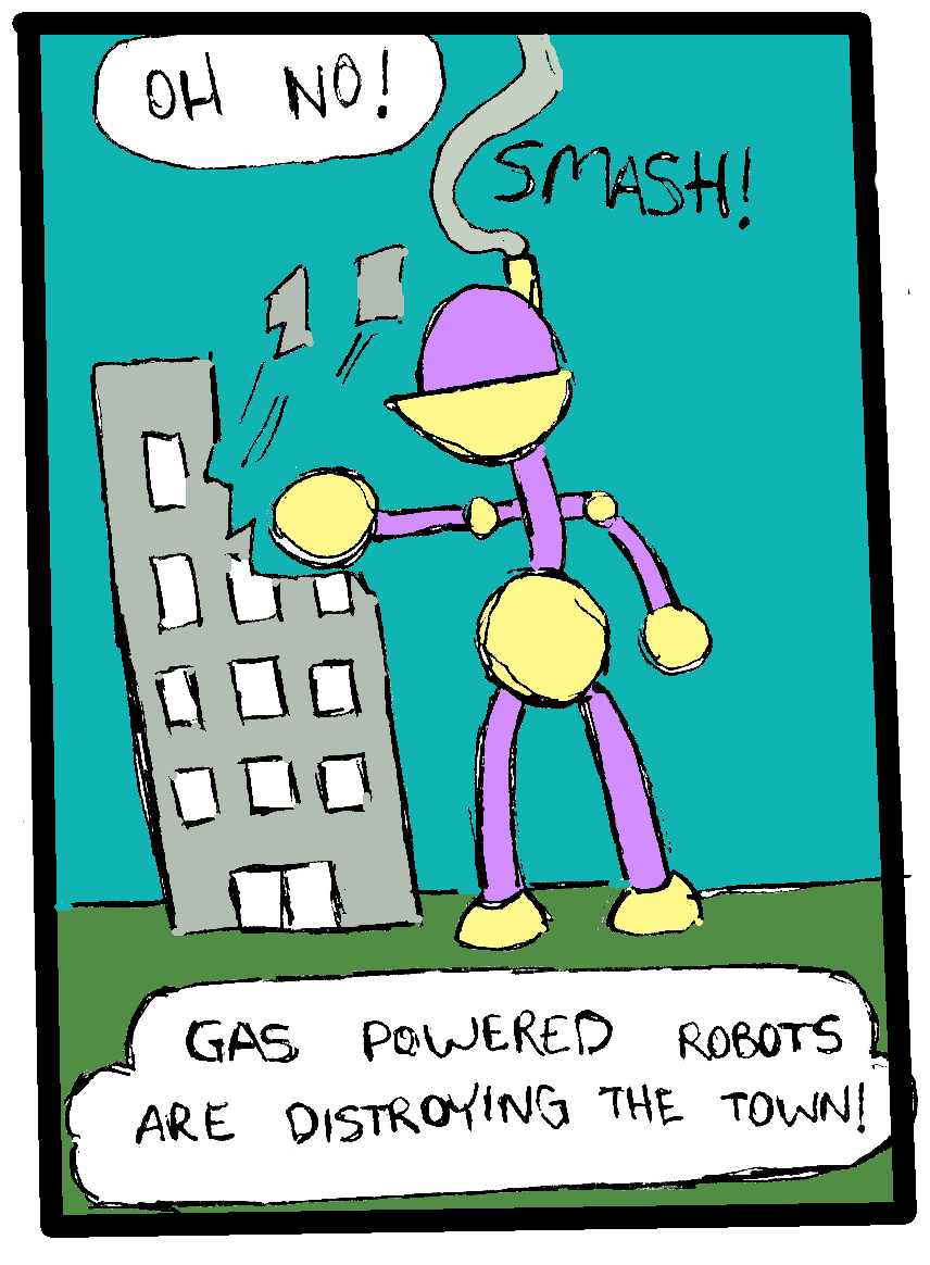 Gas Power Robots destroy a city