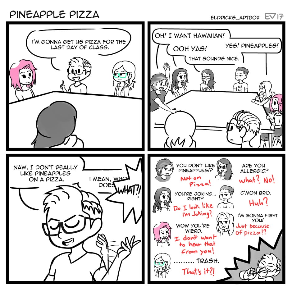 I mean, I'll eat it if it's the only pizza left. The whole table went on a riot that moment haha.