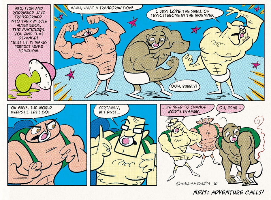 Humor/adventure comic about a group of toddlers with magic powers, on a mission to rid the world of bullies and evildoers of all shapes and sizes. The Pacifiers is based on a silly idea by Andreas Qassim. Script by Jimmy Wallin. Art by Andreas Qassim.