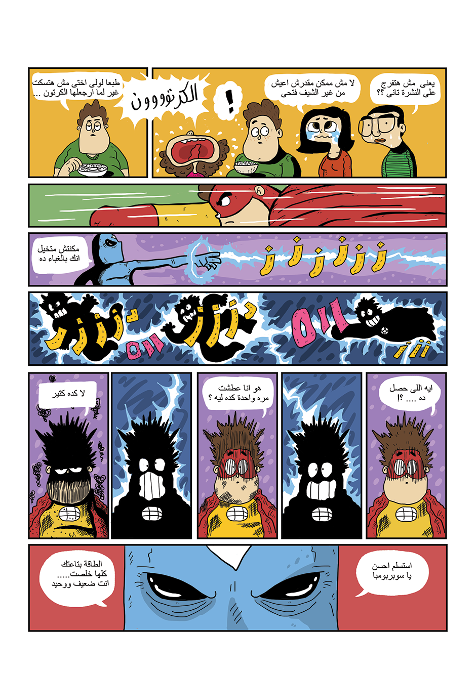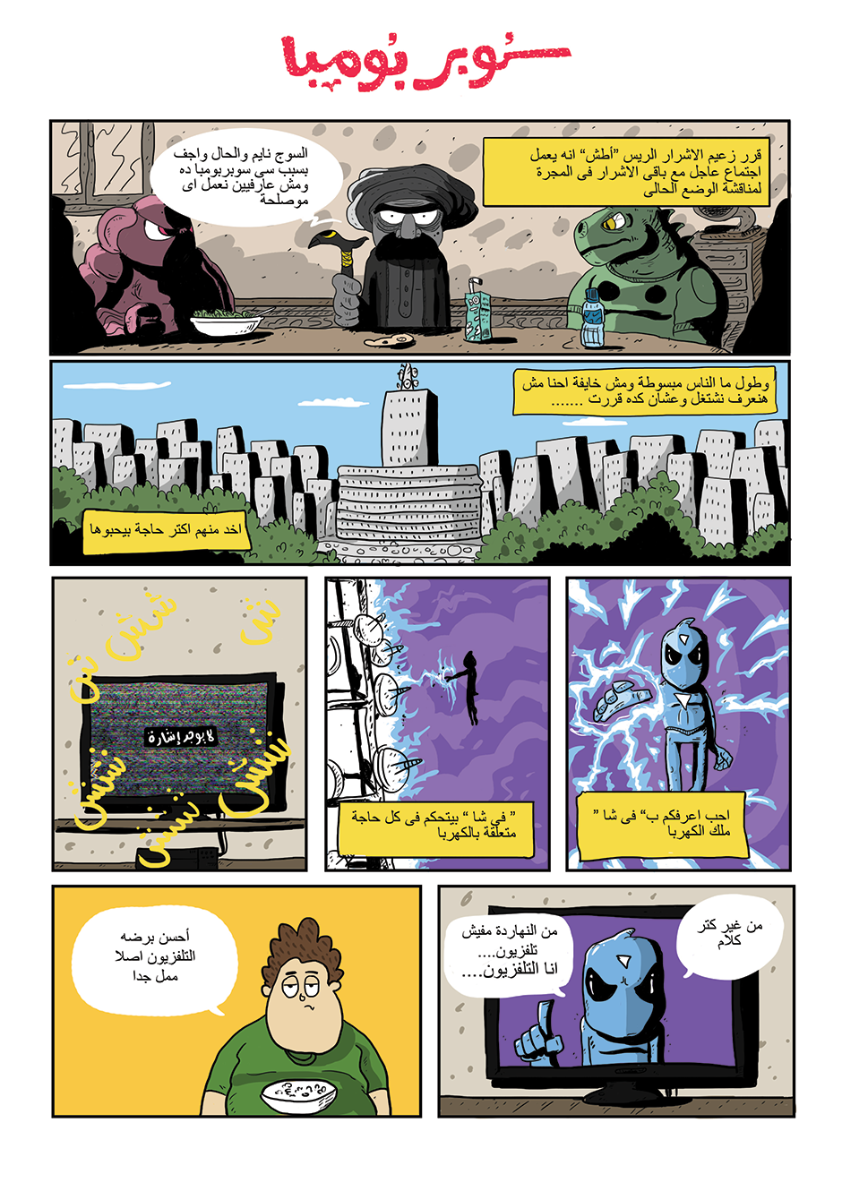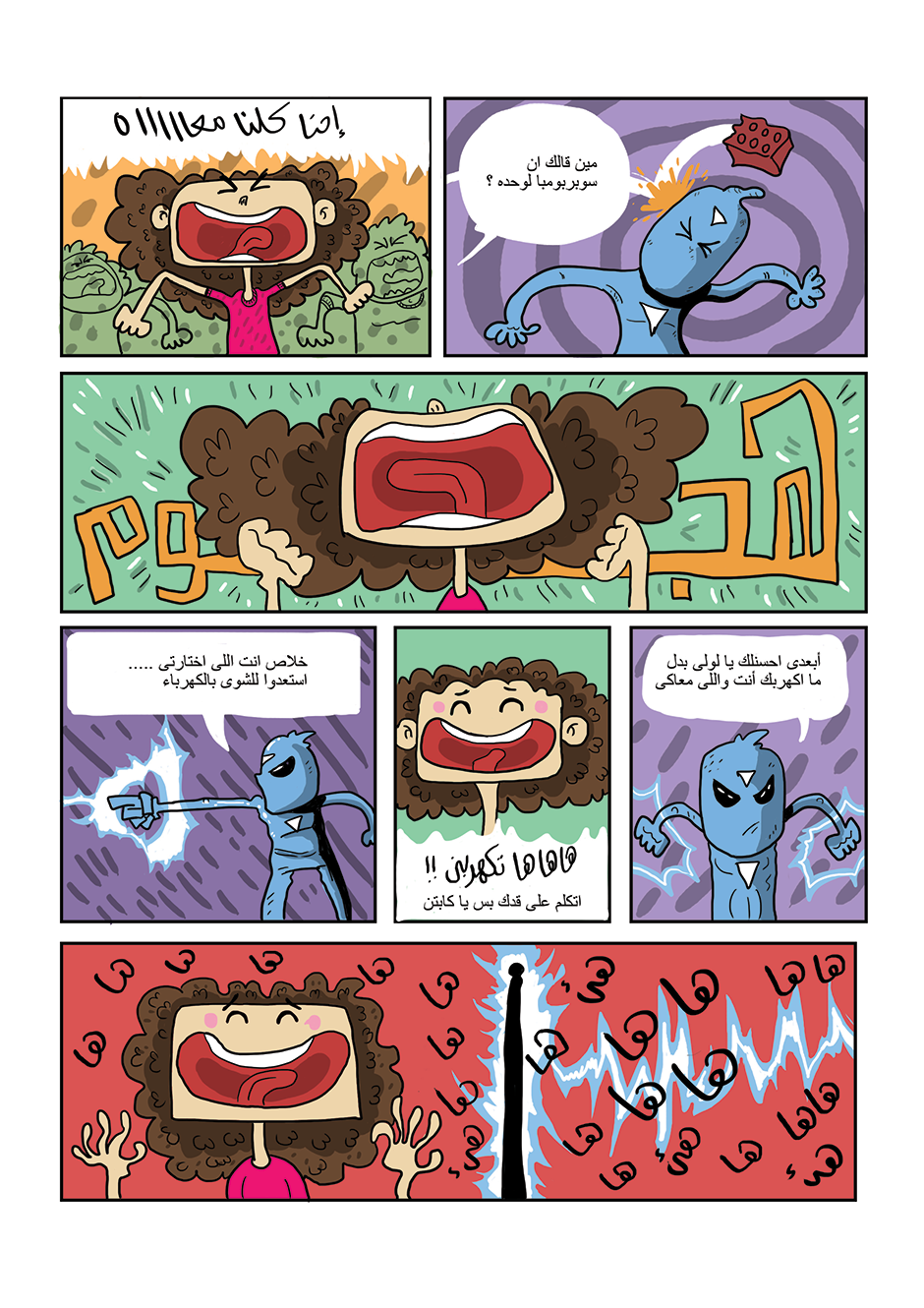 bomba is super hero his powers come from his ability to anger management and stay calm under pressure he can absorb negative energy and then use it as power , in other hand he is a lazy gamer kid how loves to eat traditional Egyptian food or to be honest he loves all kind of food , he work for universal organization for hero's called the organization