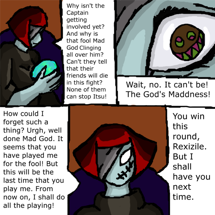 Things are starting to pick up. Is a fight between Rexizile and Necorma around the corner? How will the heroes fair against the anti-god weapon? What is The God's Madness? How will it effect what is to come?