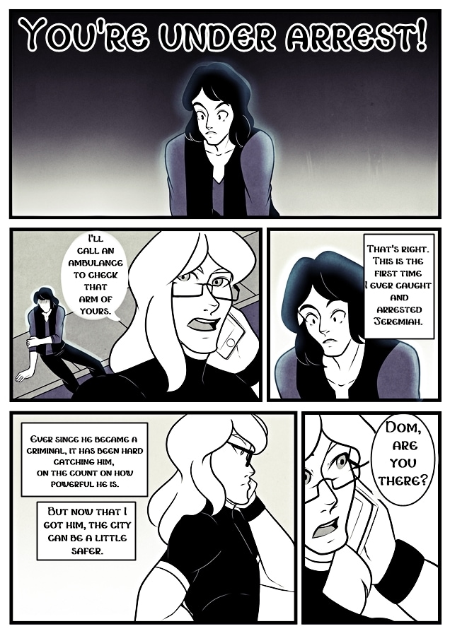 This is about two enemies: Kant, the city hero and Jeremiah, the city criminal/villain. One fight lead to the villain breaking his arm and finally the hero had the advantage to arrest him.