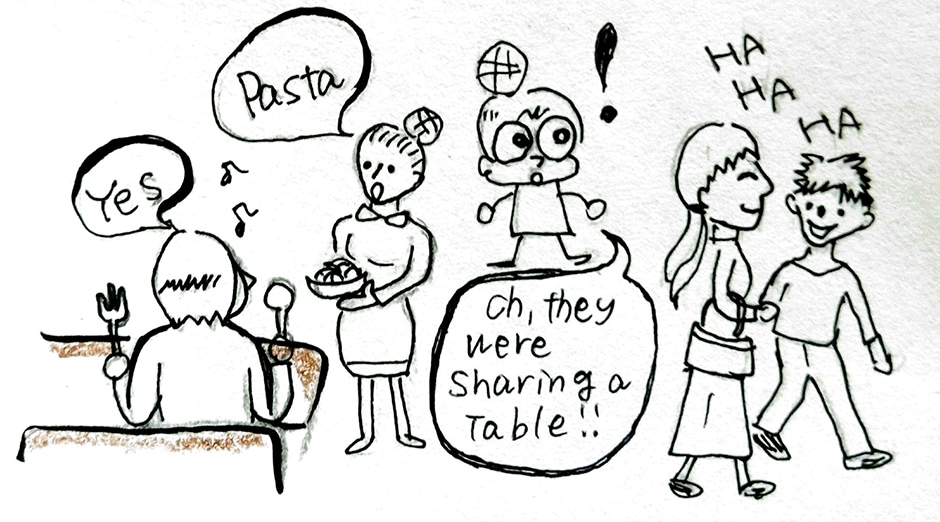 Momo observes a strange get-together at a restaurant. Does this family not get along? Or are things not always as they seem?