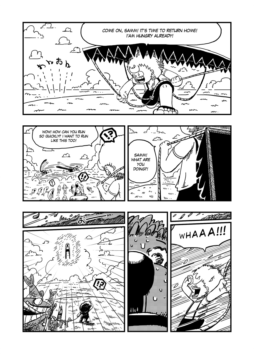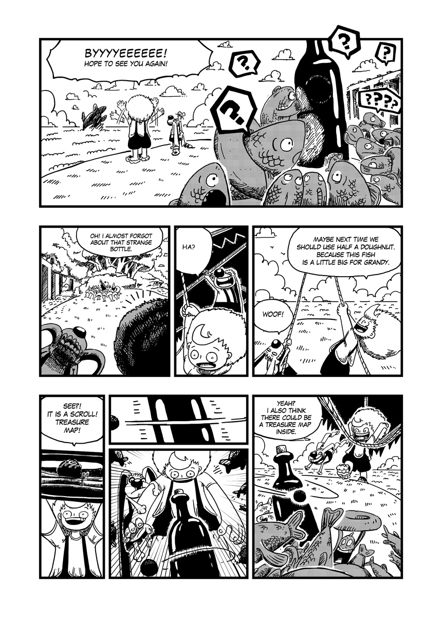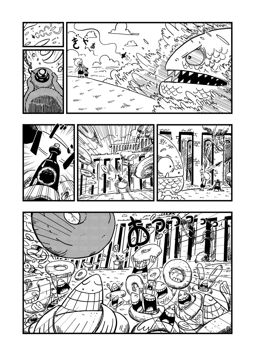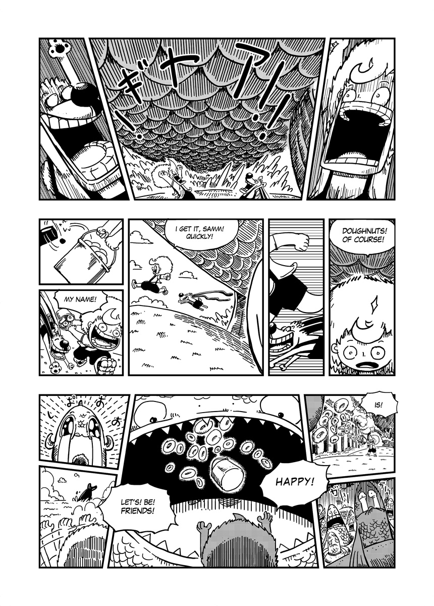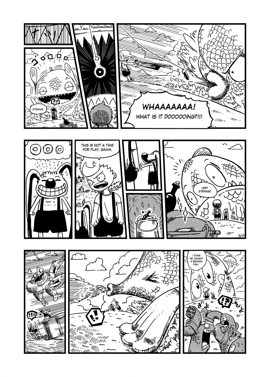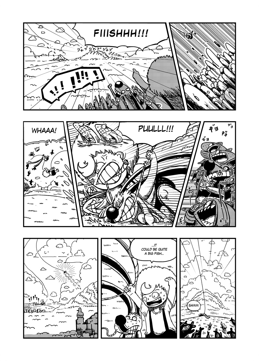 A Little boy and his ultimate friend are living amongst clouds, on a little orange sky atoll. And as all little guys they're trying hard to become skyriders. Strange things begin to happen when they met a weird guy who teaches them how fishing with doughnuts.