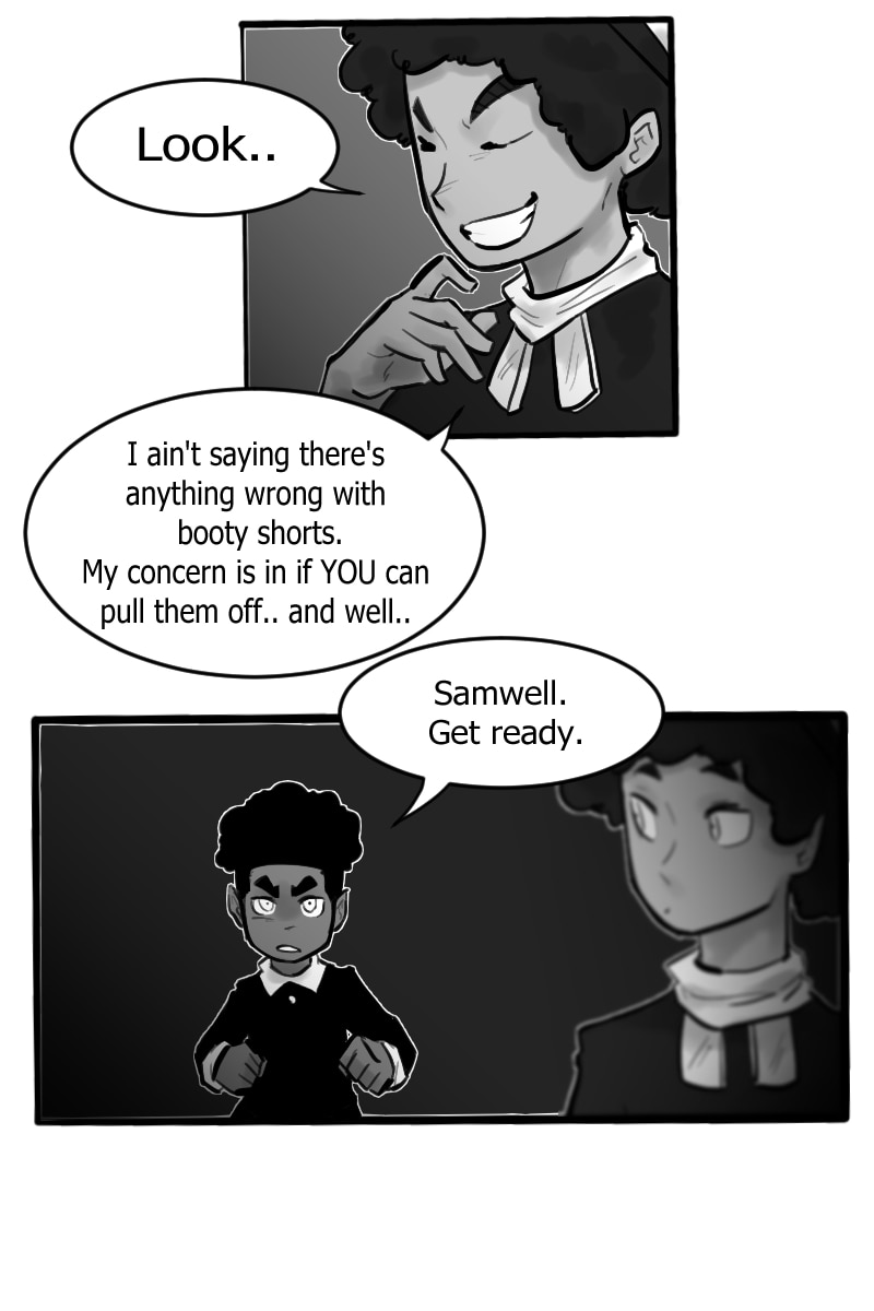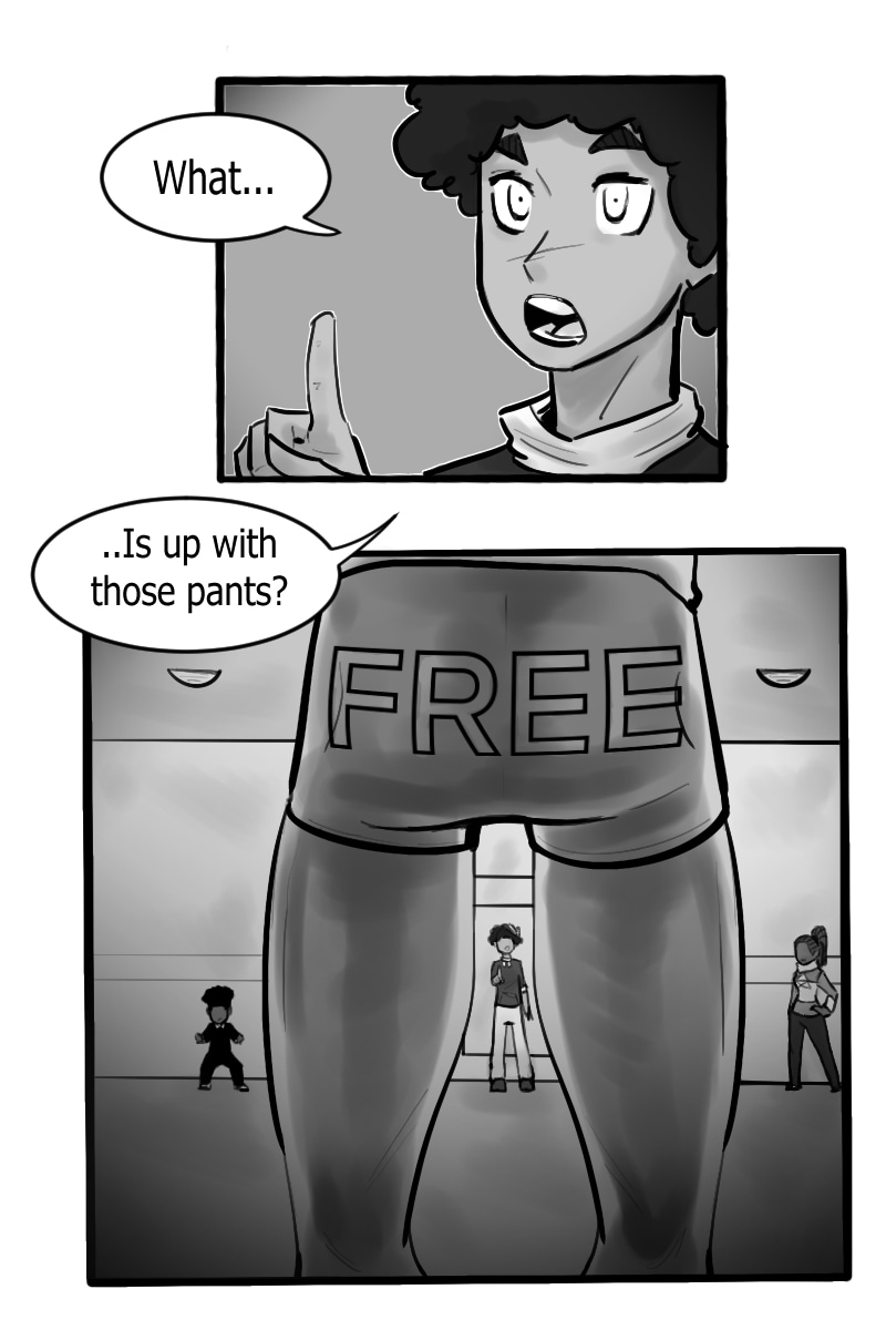 In the midst of their escape, the squad is stopped by a man wearing booty shorts